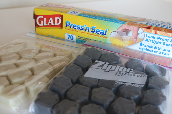 今日できたてほやほやの石けんは、1つずつ包んでジップロックへ。