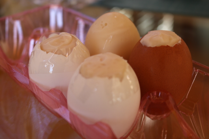 白い卵より赤い卵の方が、殻が厚くてやり易い。色々発見があります(^^)