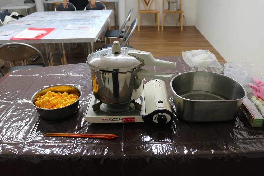 自宅で何度もシュミレーションをして、しっかり準備を整えてセリシン液抽出の初レッスン。