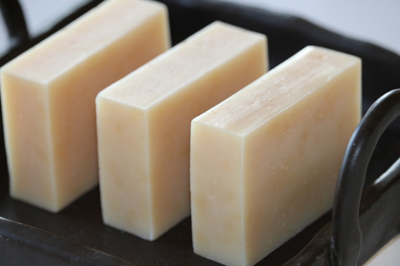 色や香りをつけないシンプルな石けんにすると、うっすらピンク色の石けんに。