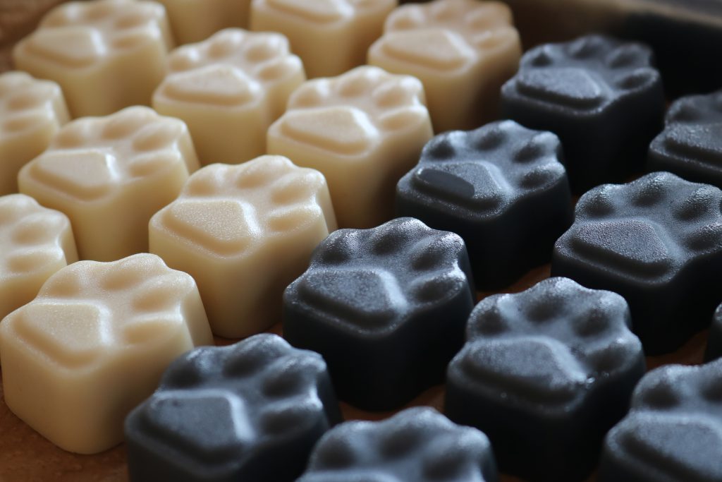 犬に手づくり石けんがよいと聞いて、本を見ながら作った石けんを自分で使ったらとてもしっとりして、犬にもきっといいだろうな、とはじめた石けん作り。