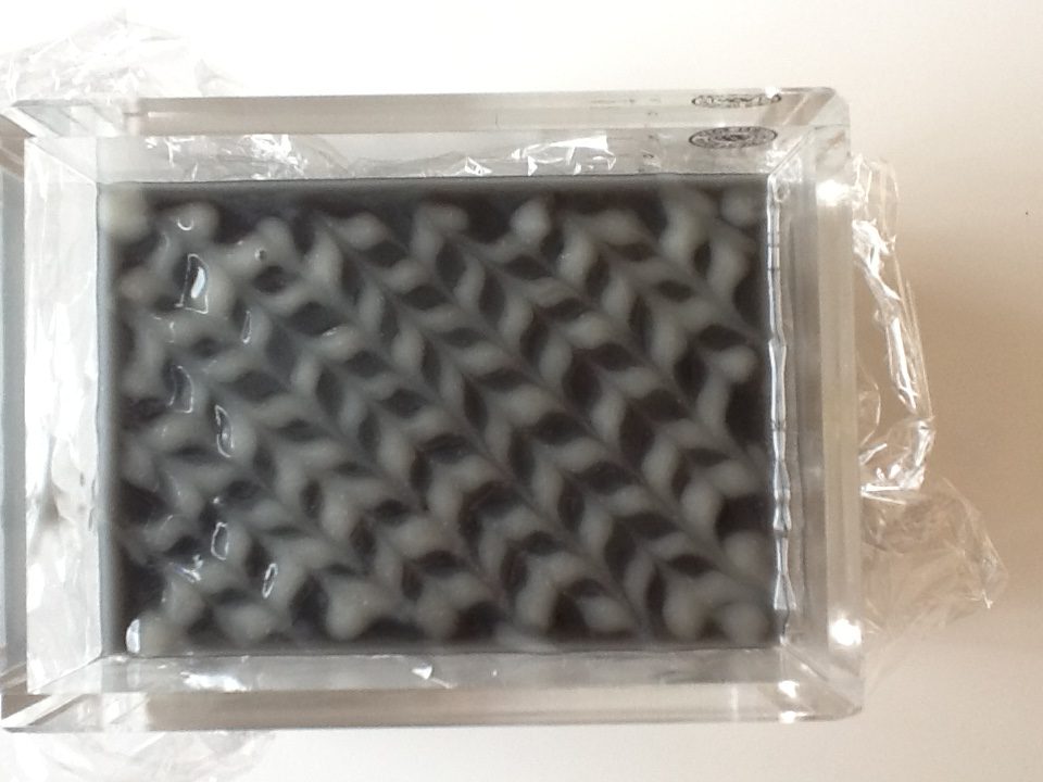 竹炭の石けん・2 石けん 2016.09.19 ご訪問ありがとうございます。 神奈川県大磯町の内藤石けん教室です。 竹炭の石けんで、矢羽根デザインの練習。 表面だけのデザインです。 ・・・好みでなないですが。 練習、練習~。