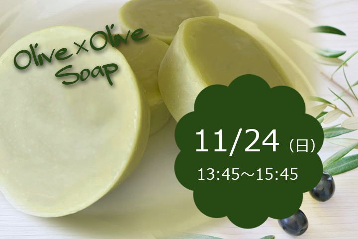 2019年11月23日(土・祝日)~24日(日)に開催され、内藤石けん教室は11月24日(日)にオリーブ×オリーブ石けんのワークショップで参加します。石けん作りの他にも、オリーブの枝葉を使ったハーバリウム作り、オリーブ染体験、おりーぶ盆栽など、オリーブを使ったワークショップが満載。オリーブオイルを使った食べ比べ講座など美味しい体験もあります。(要予約)