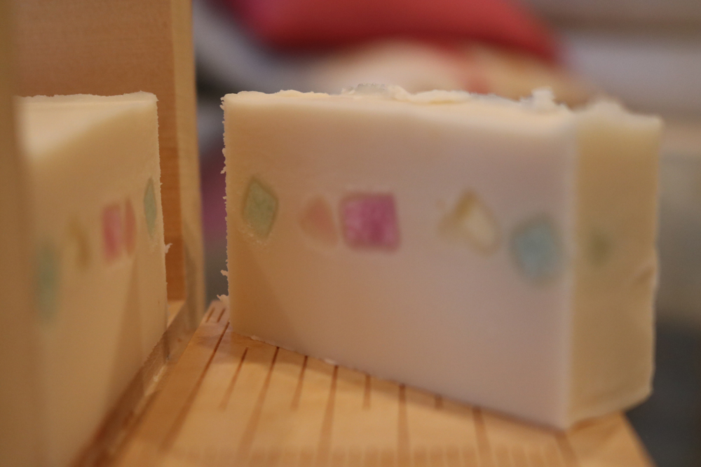 8色用意しているモザイク石けんで、デコレーションします。