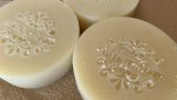 型入れ、乾燥後はうっすらベージュ色のクロモジ茶石けんになりました。