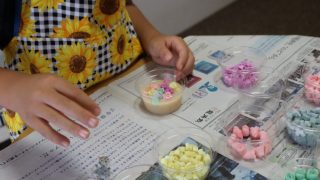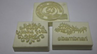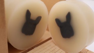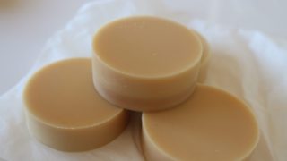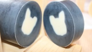 マカダミアナッツオイルとシアバターをたっぷり入れた石けん。真っ白で、かたーい石けんになりました。薄くスライスして、もう少し日にちをおいてからスタンプ押します。白い石けんってやっぱりいいなぁ~♡
