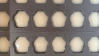 カモミールたっぷりの石けんを作りました。オイルにカモミールを入れて温浸出しているとカモミールのいい香りで癒されます。数日前に作ったシルクの石けんを型出しして、空いたモールドに流し込み。石けん作りの時間は、楽しい時間です。