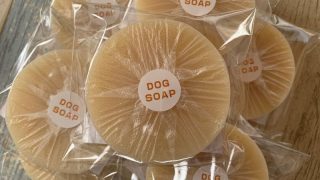 カモミールマカダミア石けんとオリーブ×オリーブ石けん。ドッグソープ、販売中です。