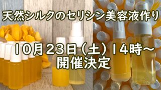 10月23日(土)に「天然シルクのセリシン美容液作り」オンラインレッスンを開催しました。今回は3名様のご参加をいただき、久しぶりの少人数レッスンでアットホームなレッスンとなりました。ご参加いただいた皆様、ありがとうございました。次回は11月...